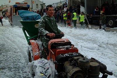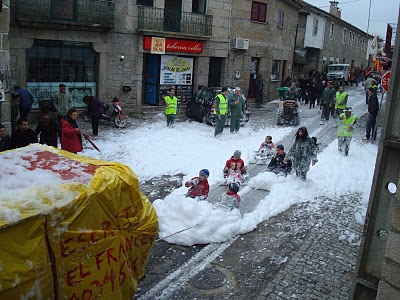 O grupo TT Usprigozus, presenteou-nos no final do corso com um banho de espuma a imitar a neve. Eles são mestres na transformação dos materiais. De um mini auto carro velho fizeram um limpa neves, de um triciclo a motor fizeram um boneco com esquis, tranformaram um jipe para o equiparar aos da protecção civil. Só quem esteve em Vilarandelo é que pode ter a oportunidade de se divertir com estes e outros mestres das brincadeiras de Carnaval.
